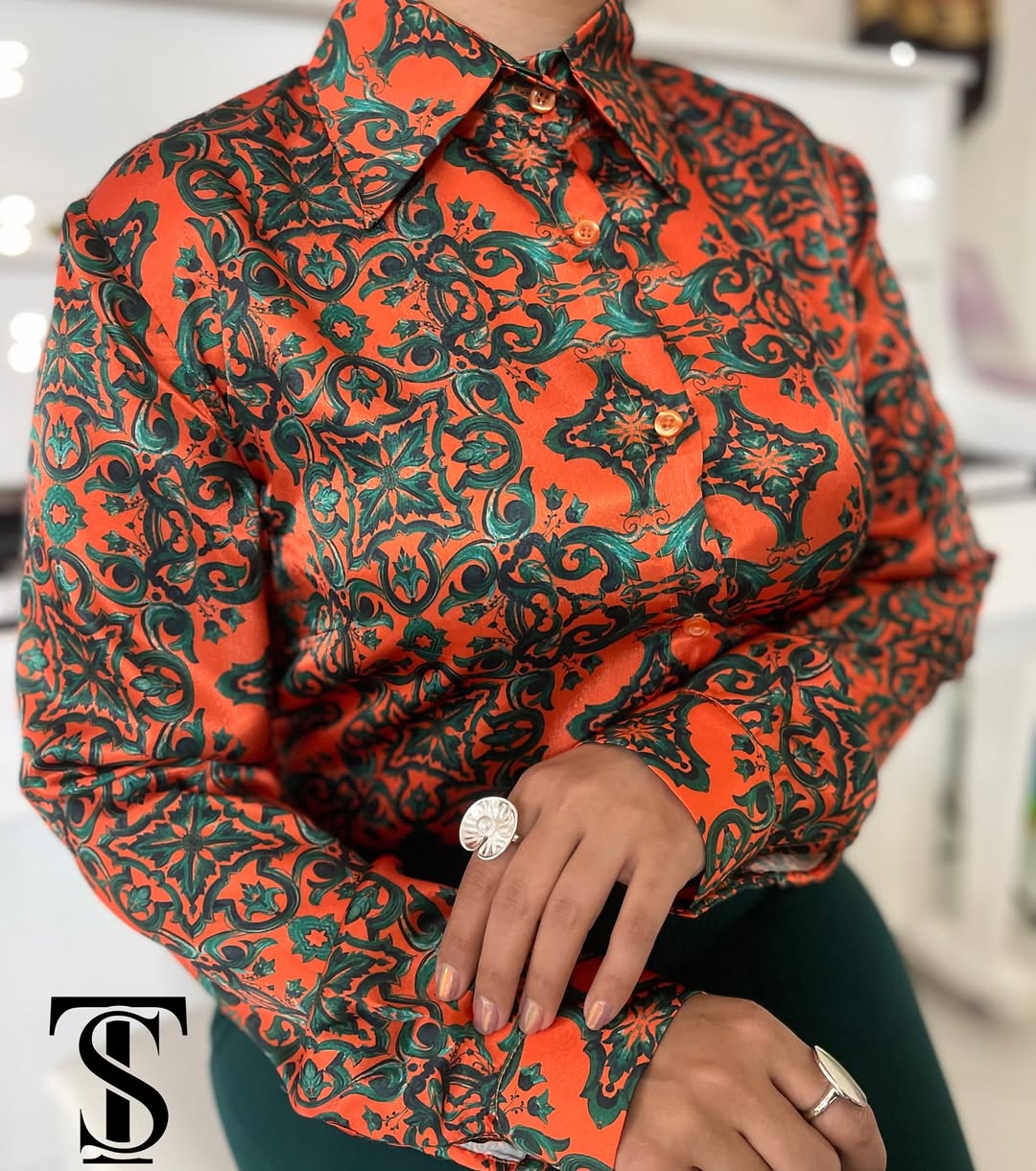 جنس پارچه: ساتن ابریشم درجه یک (لخت و ریزشی و خنک) سایزبندی: طبق جدول سایزبندی در هایلایت، از ۴۶ قابل. قد شومیز: ۷۰ سانتی متر.