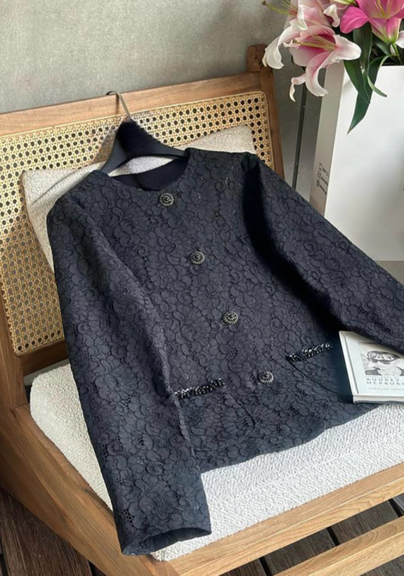 ست کت و شلوار دانتل قیطان دوزی یقه گرد مشکی